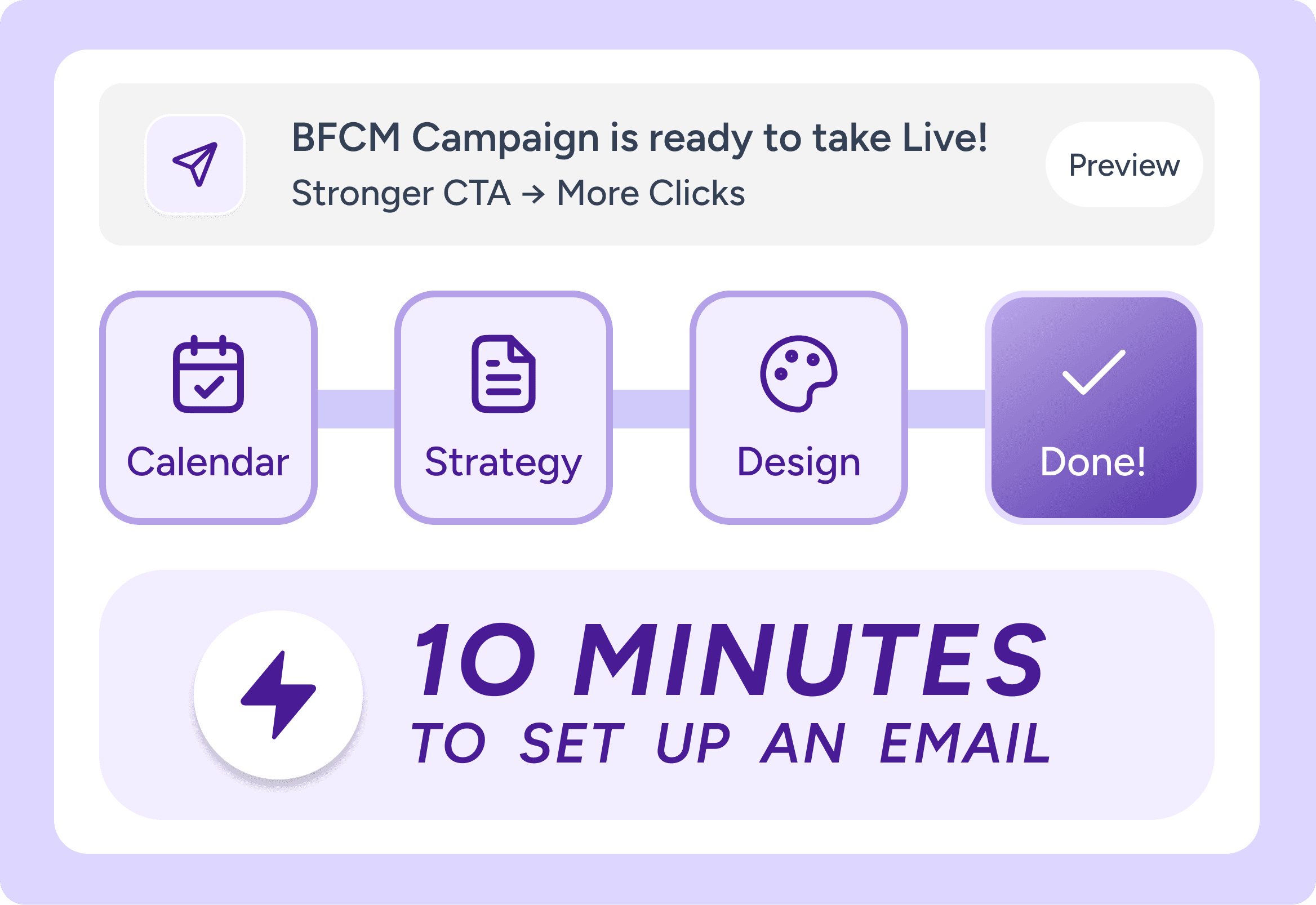 From brief to scheduled: calendars, strategy docs, and ready-to-send emails in minutes, not weeks.